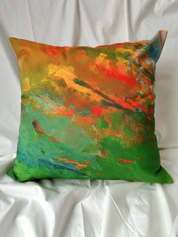 Padja kujundamiseks on kasutatud Sigrid Huiki tekstiilikunstniku karjääri jooksul kogunenud gobeläänvaiba kavandeid. Digitrükk.